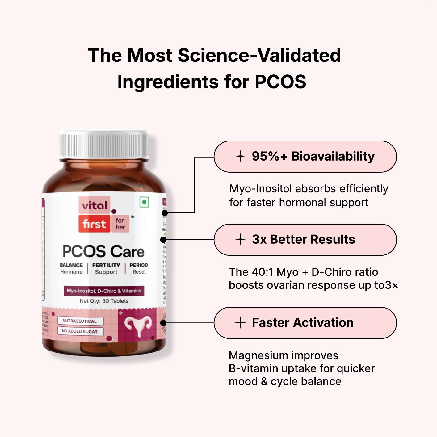 PCOS Care is a thoughtfully crafted formulation designed to support the underlying imbalances associated with PCOS. Powered by Myo-Inositol, D-Chiro Inositol, and essential micronutrients, it supports insulin sensitivity, hormonal harmony, and cycle wellness in a gentle, balanced way.